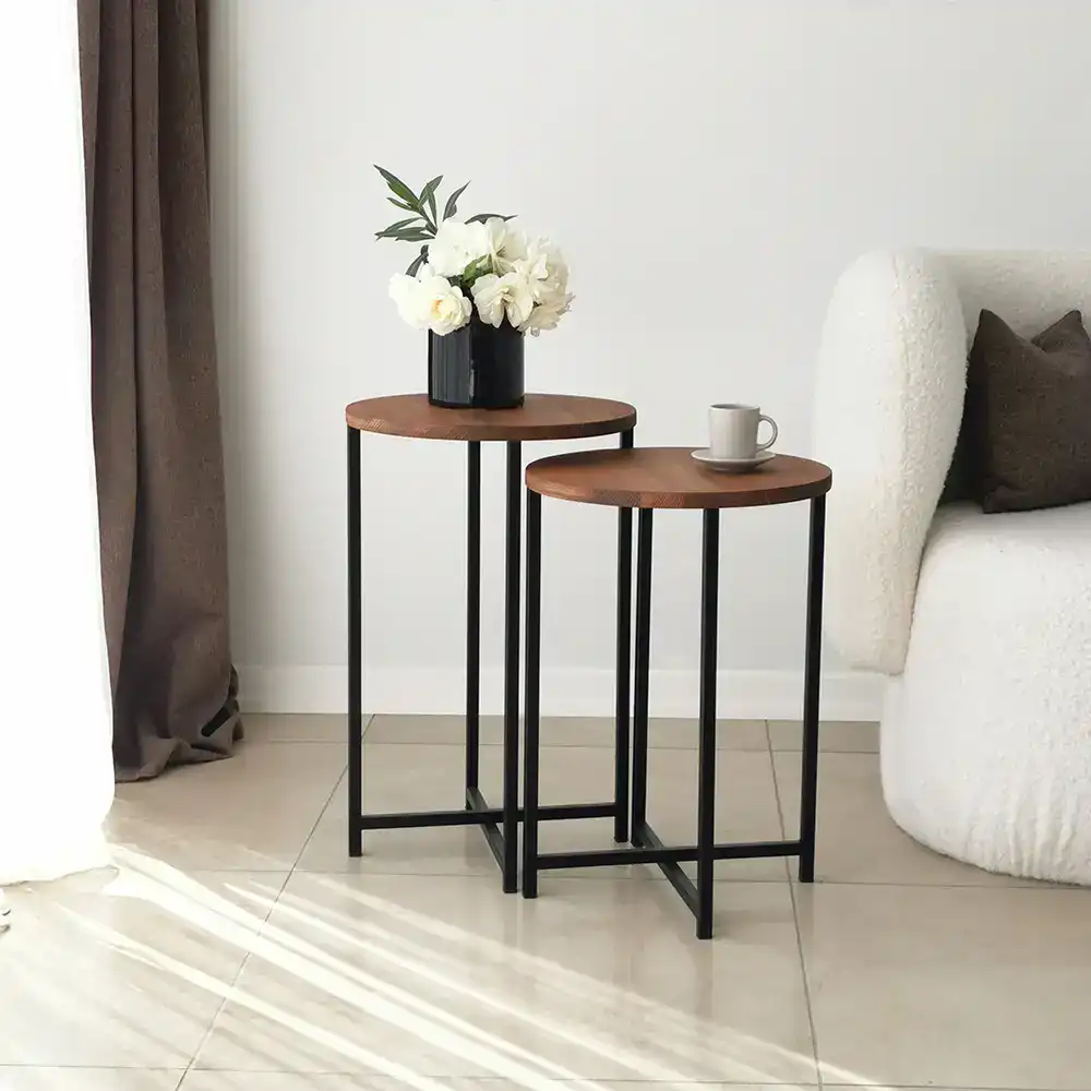 Serenity 2li Sehpa -Ceviz & Füme Cam