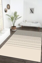Noktalı Krem Çizgili Desen Dijital Baskılı Zenit Kilim