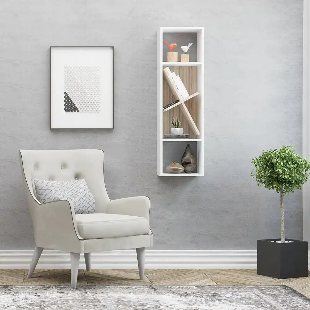 Leylak 3 Divar Rəfi - Ağ