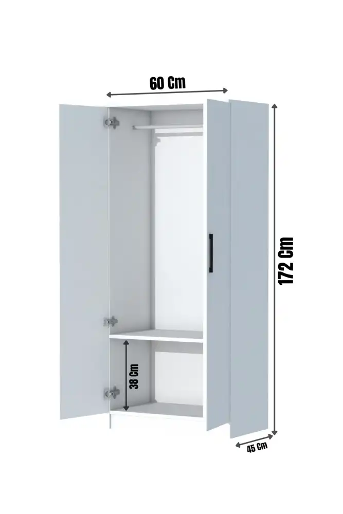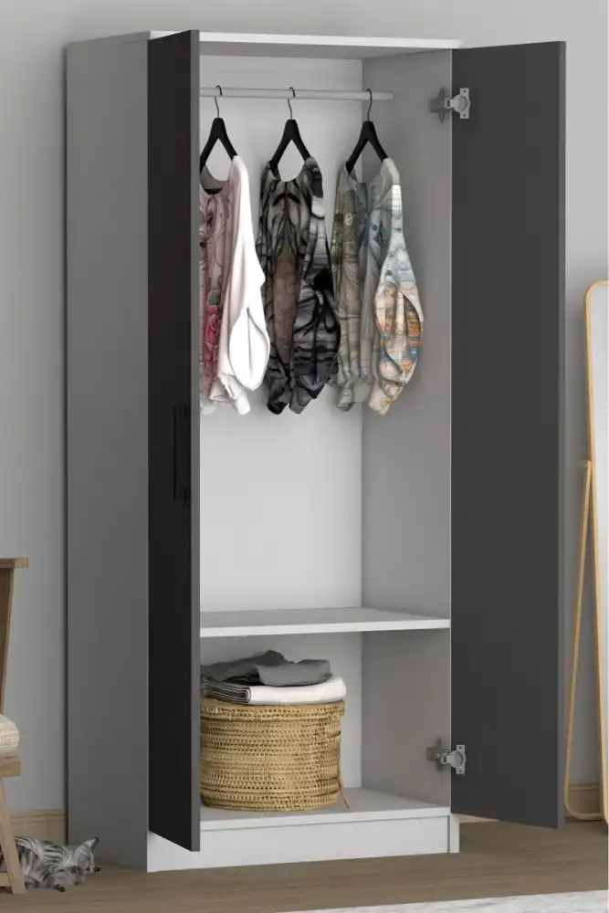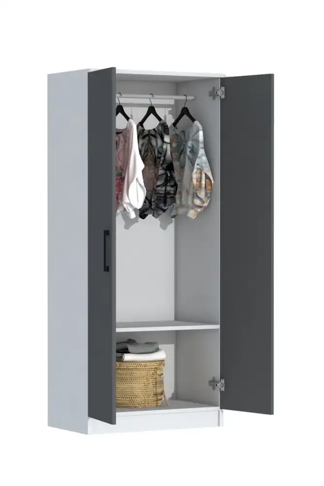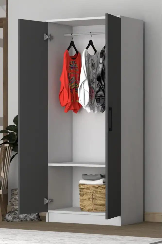 Point 2 Qapılı Geyim Dolabı - Antrasit/Ağ