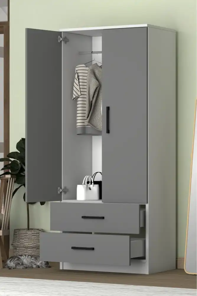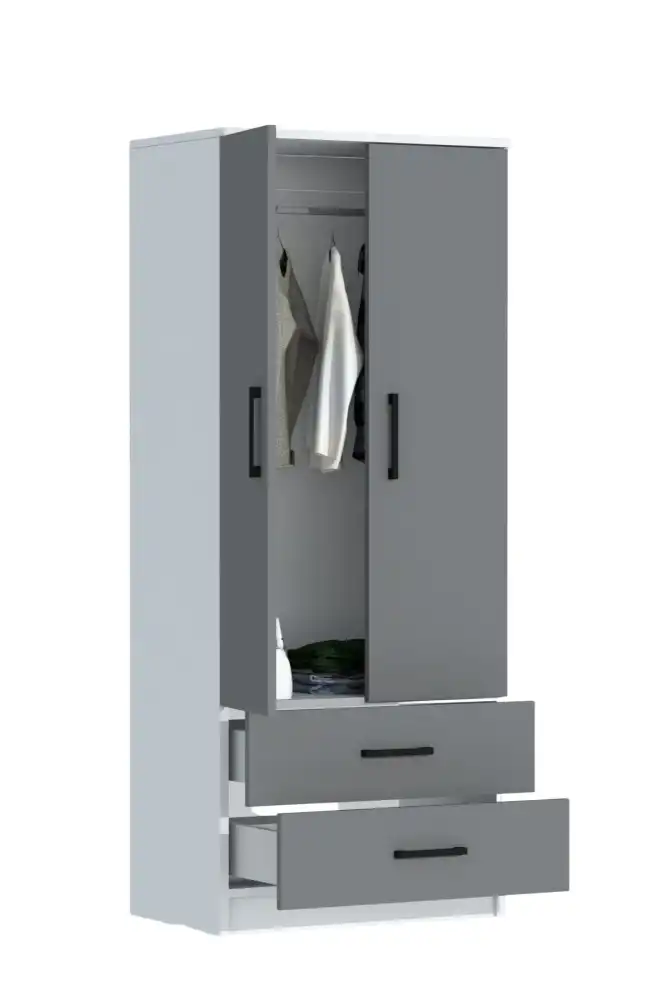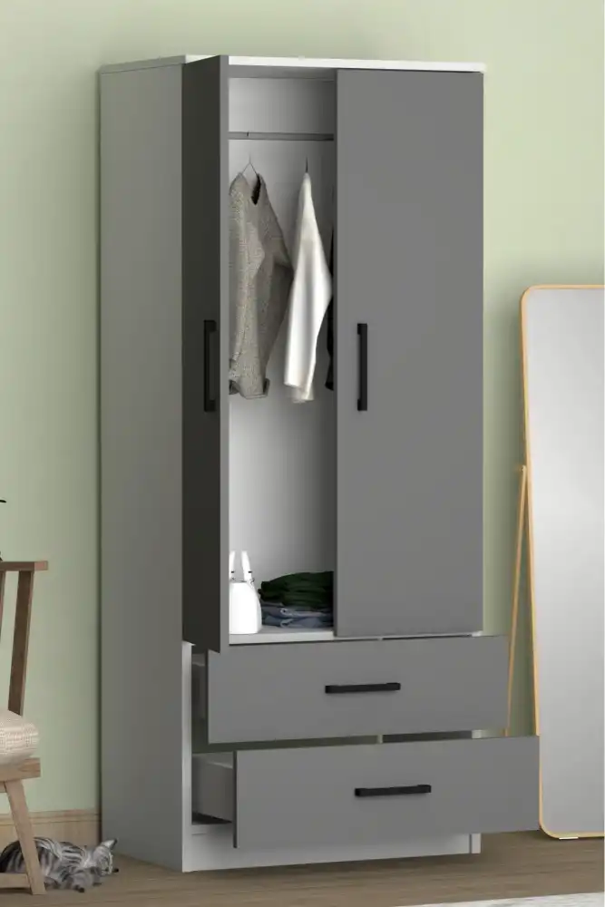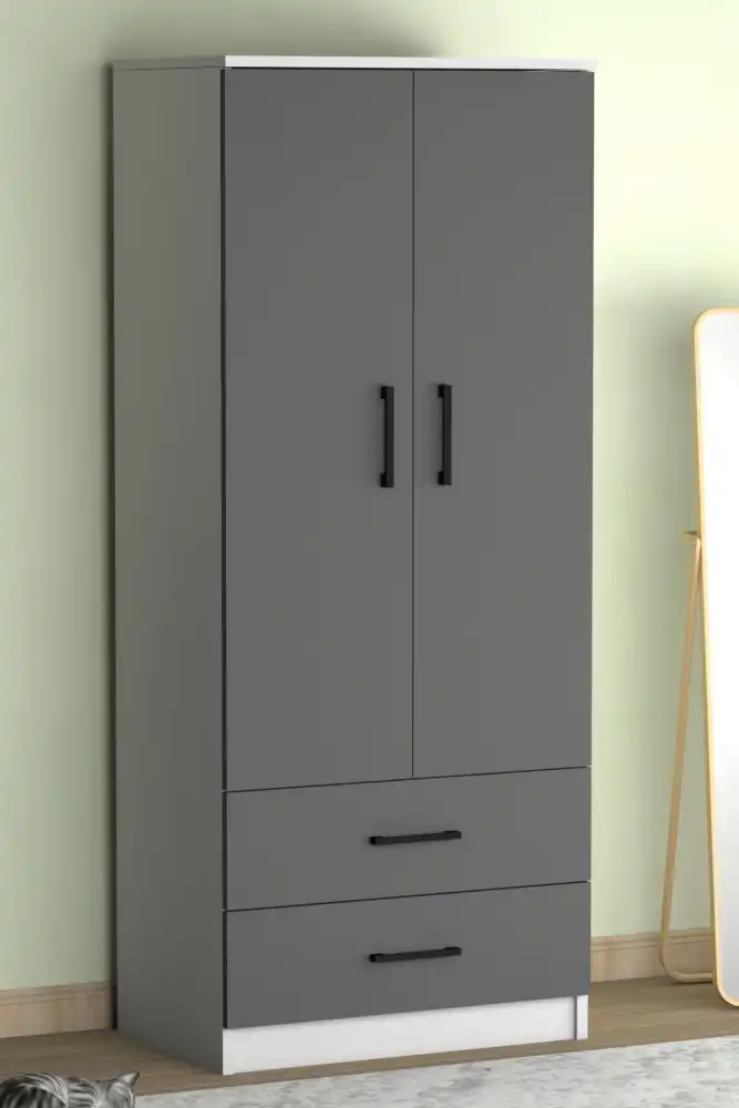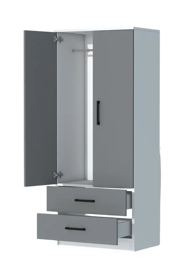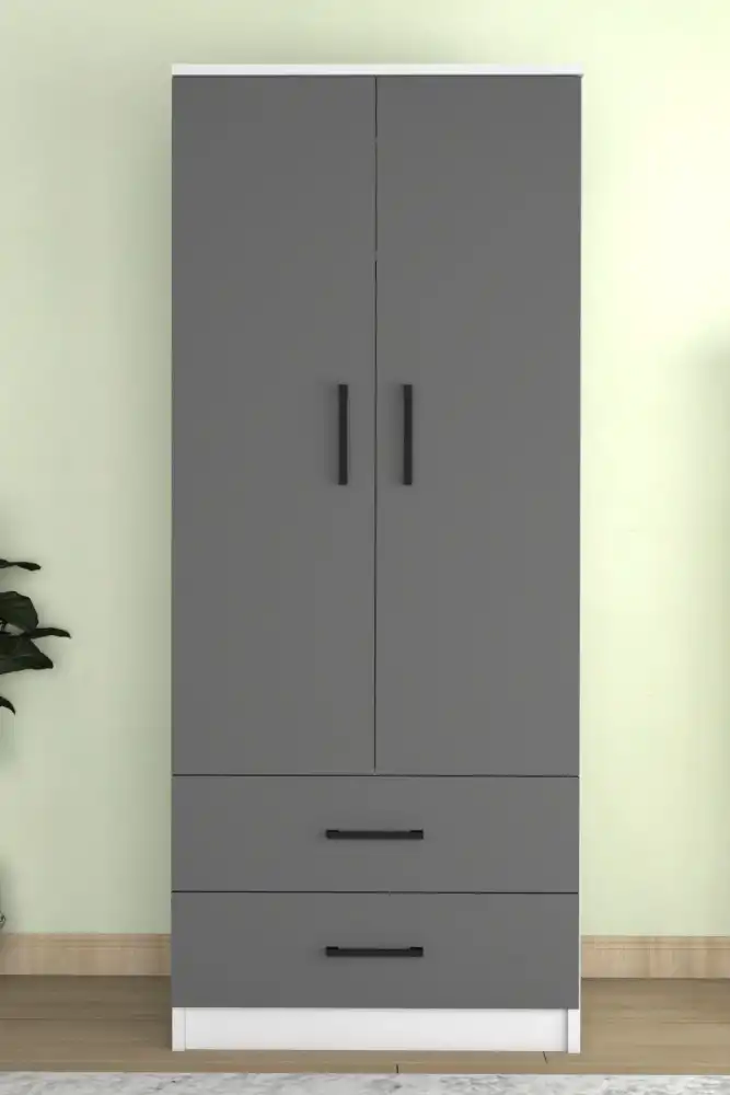 Point 2 Qapılı və Siyirtməli Geyim Dolabı - Antrasit/Ağ