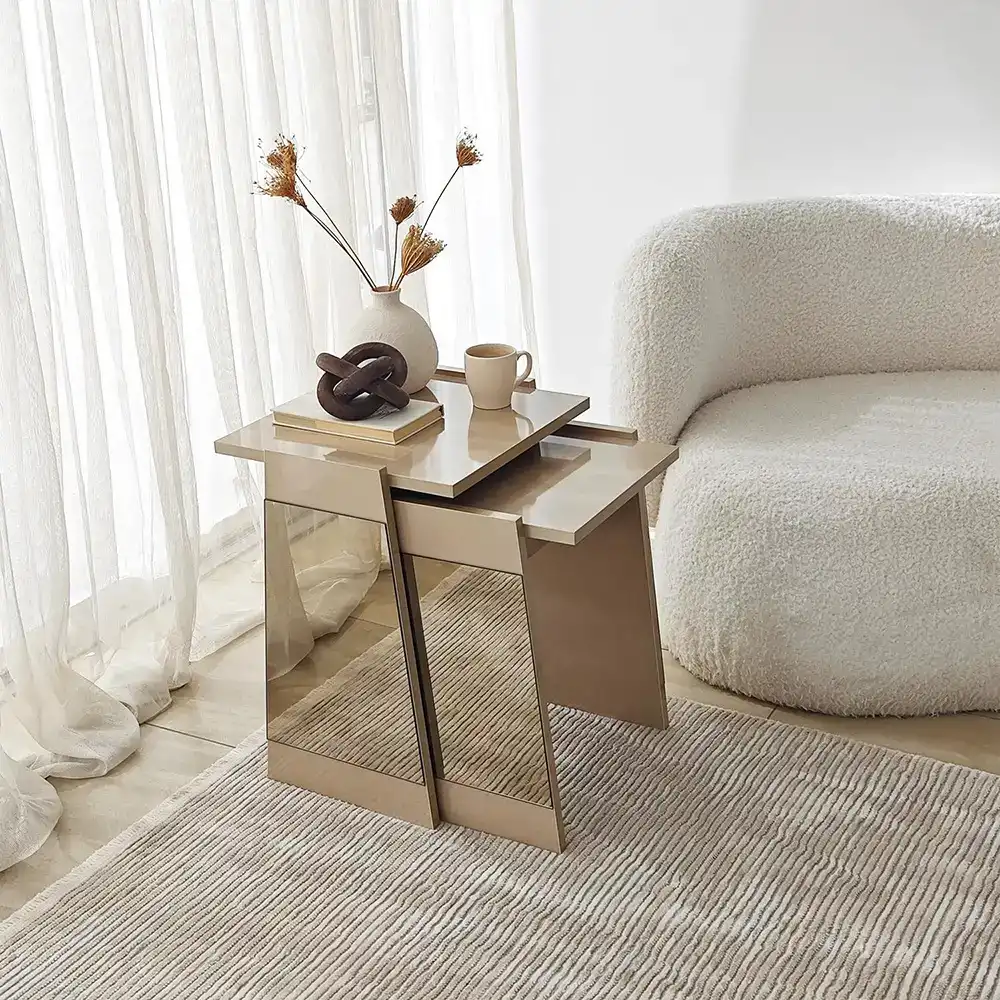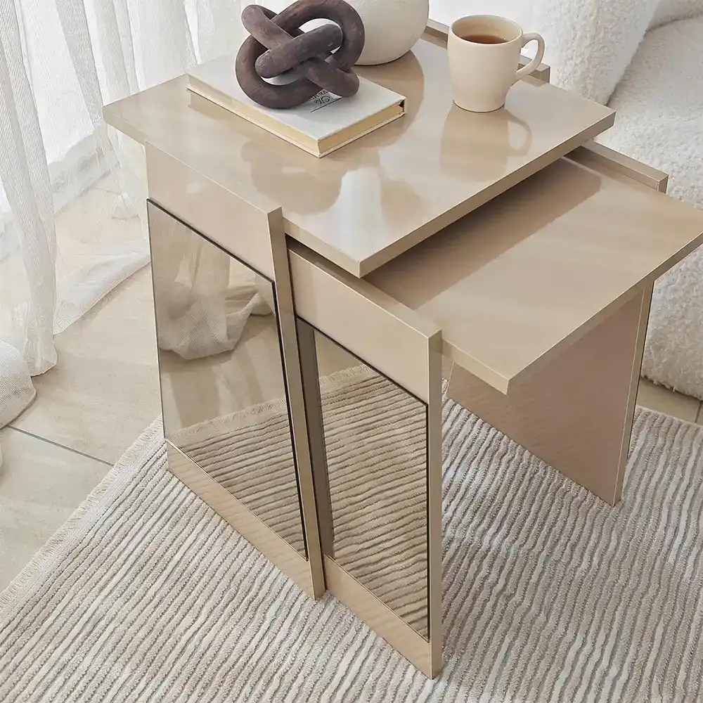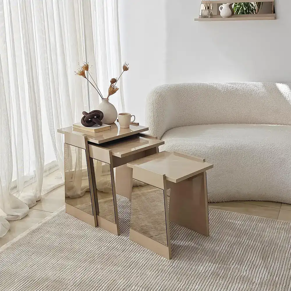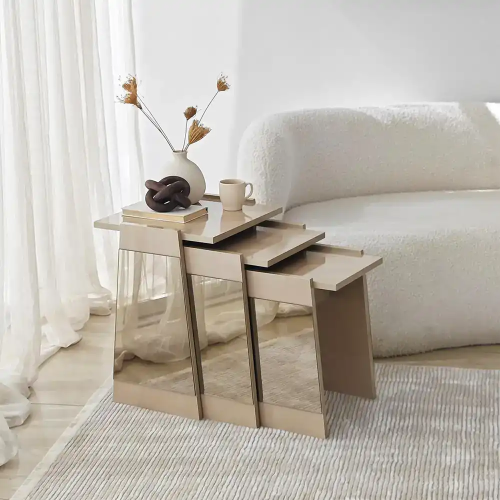 Queen 3'lü Zigon Sehpa - Krem/Bronz Güzgü