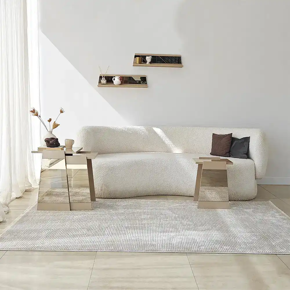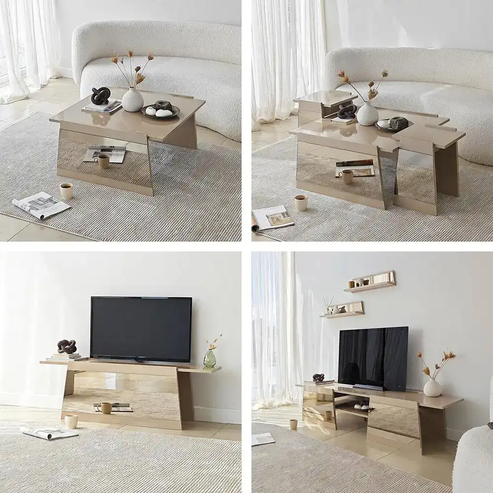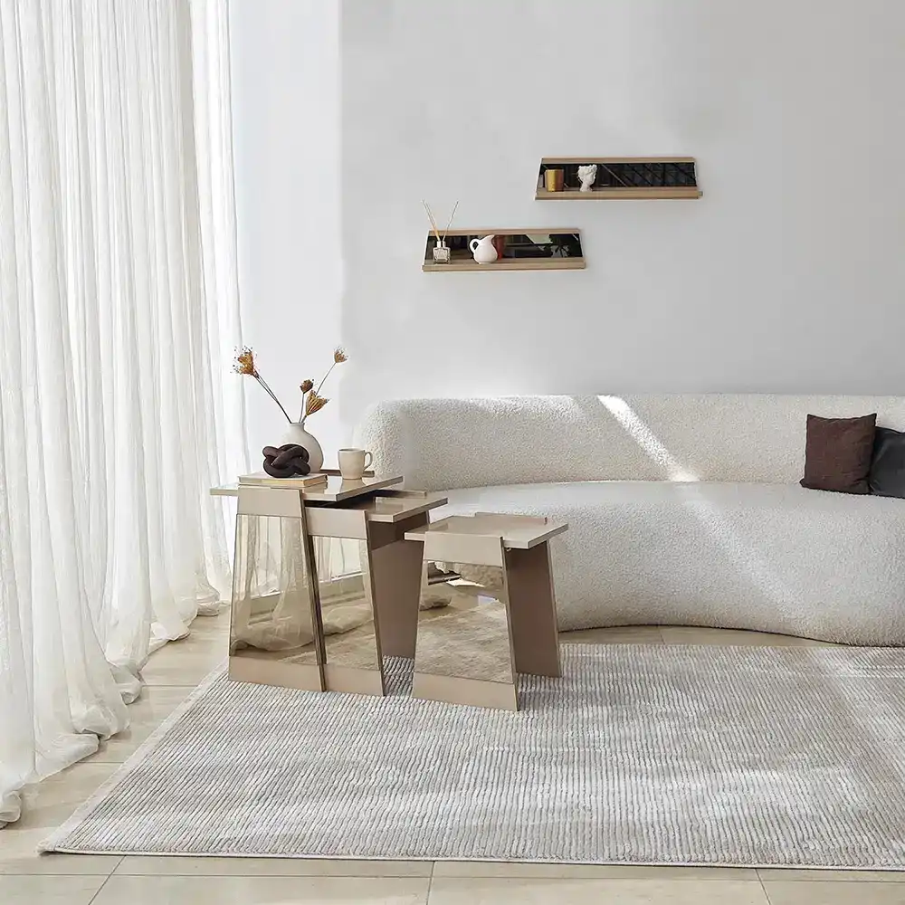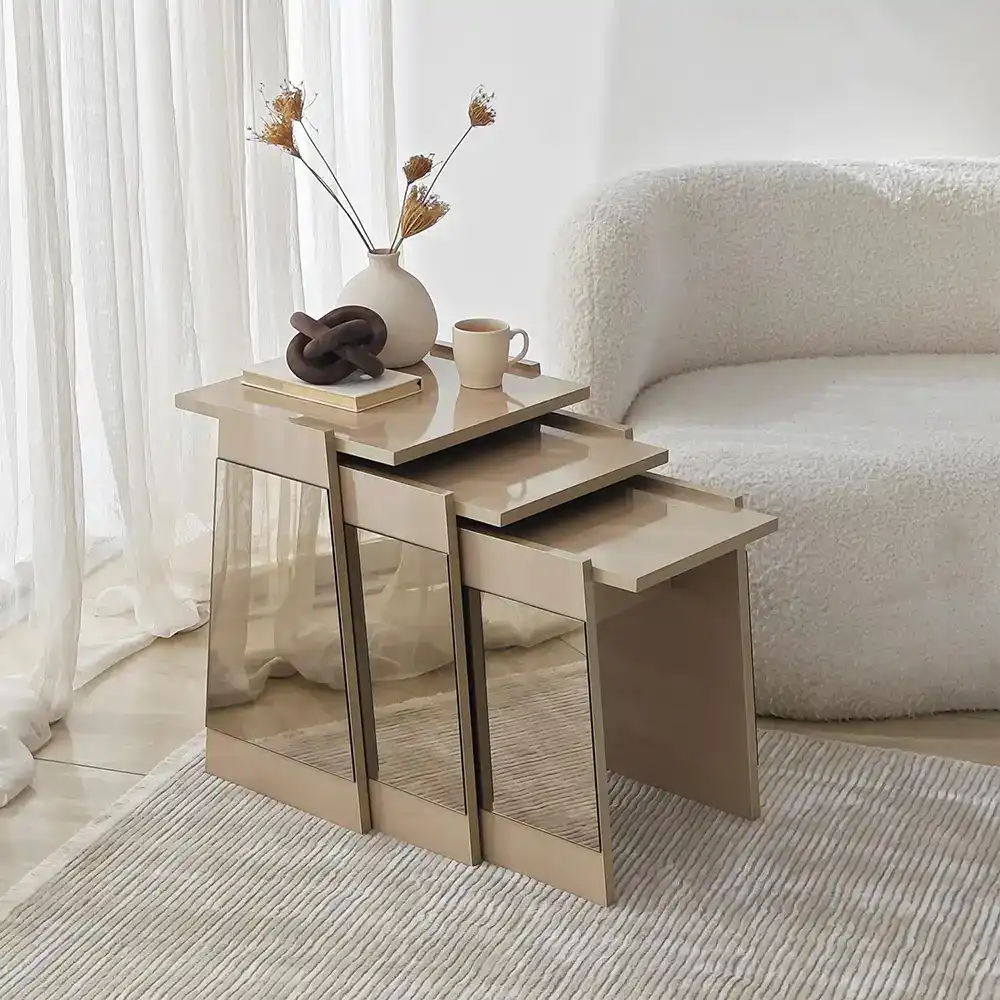 Queen 3'lü Zigon Sehpa - Krem/Bronz Güzgü