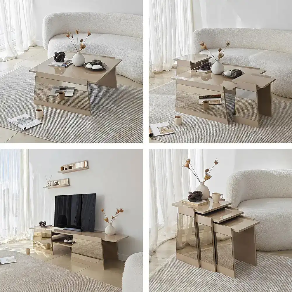 Queen Güzgülü Tv Stend 120cm - Krem/Bronz Güzgü