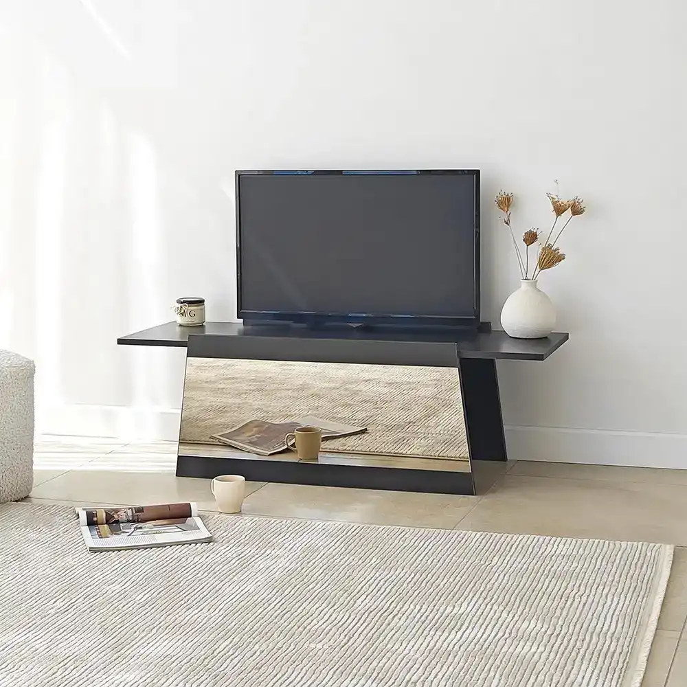 Queen Güzgülü Tv Stend 120cm - Qara/Bronz Güzgü