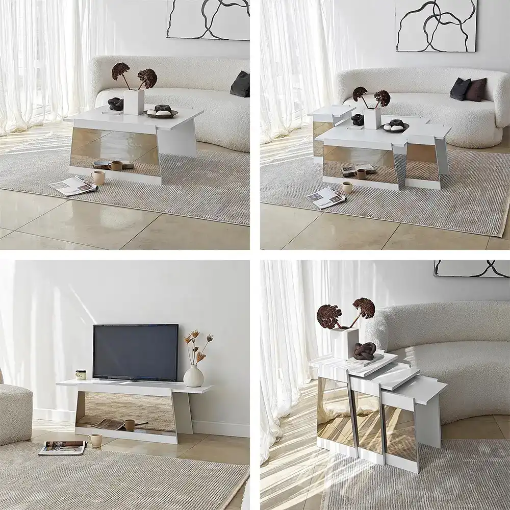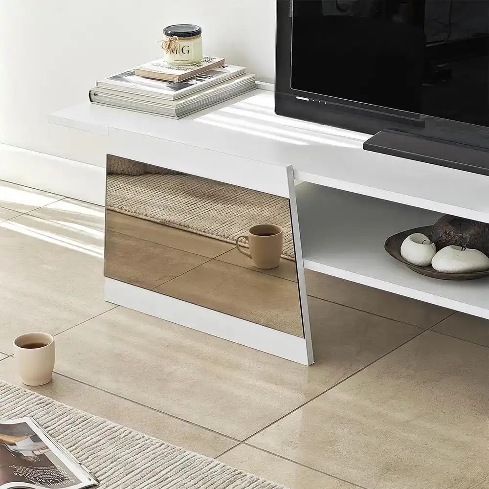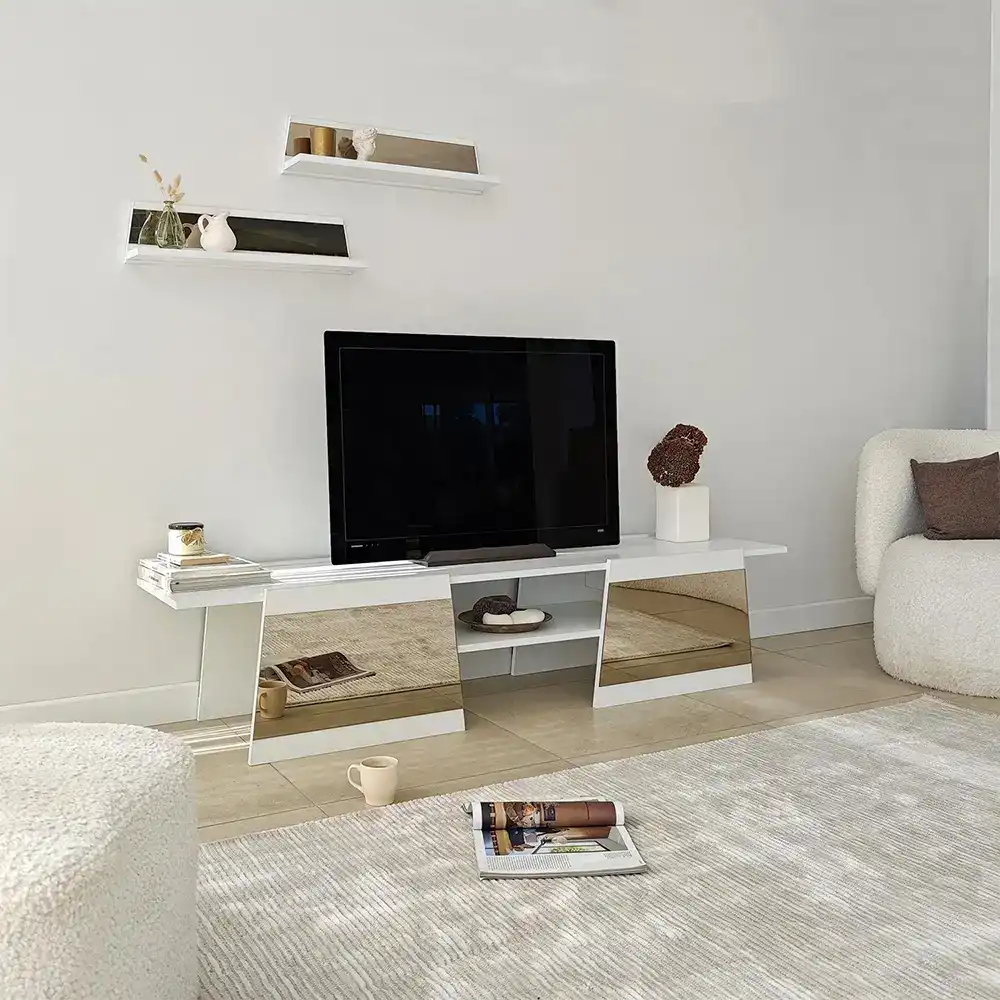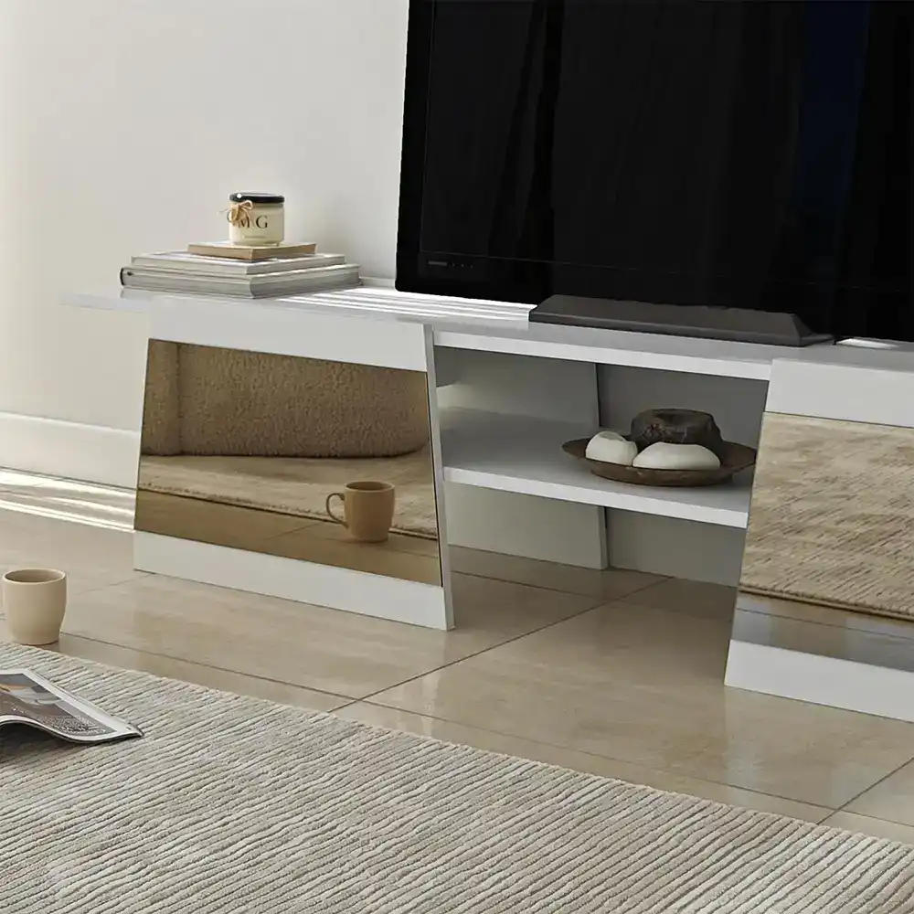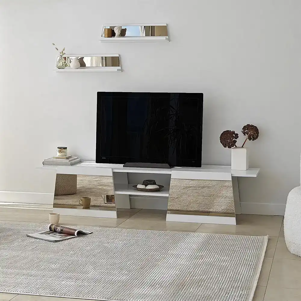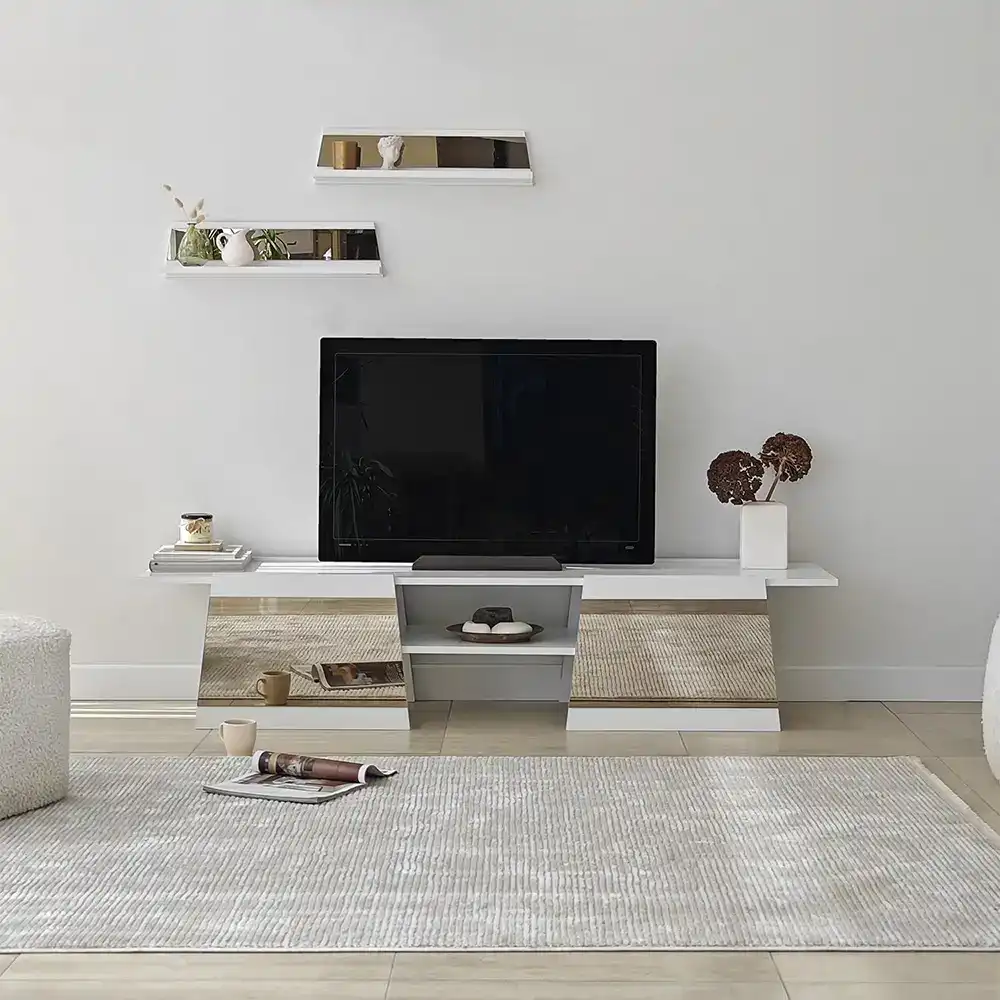 Queen Güzgülü Tv Stend 180cm - Ağ/Bronz Güzgü