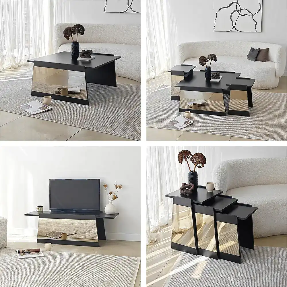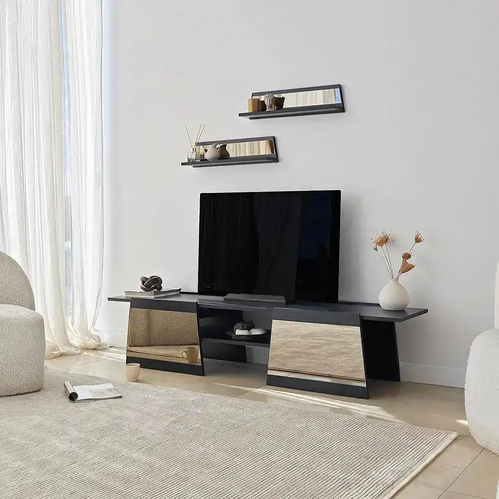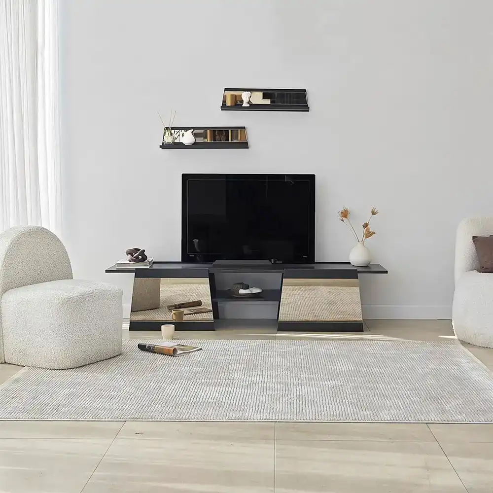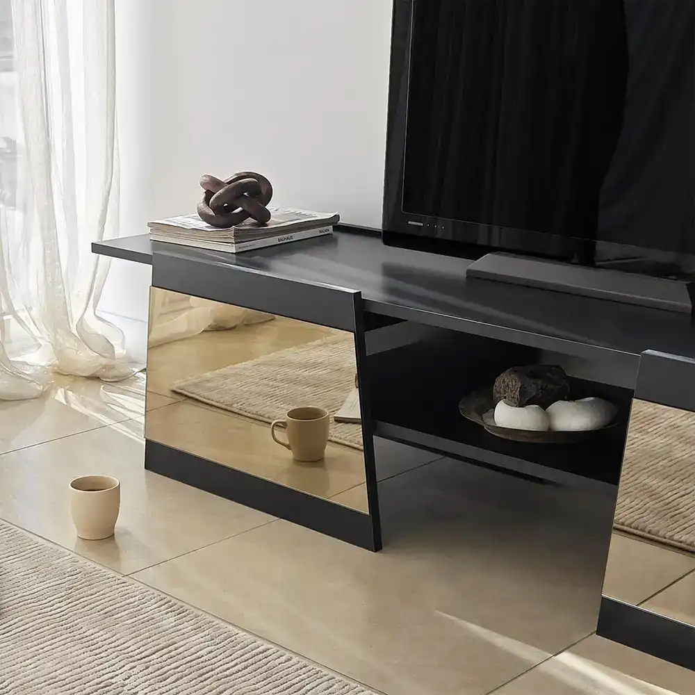 Queen Güzgülü Tv Stend 180cm - Qara/Bronz Güzgü