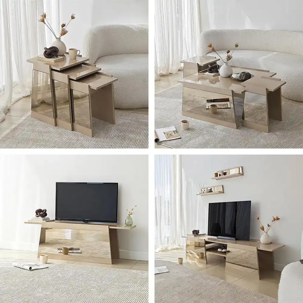 Dior & Porto Sehpa Seti - Füme & Gold