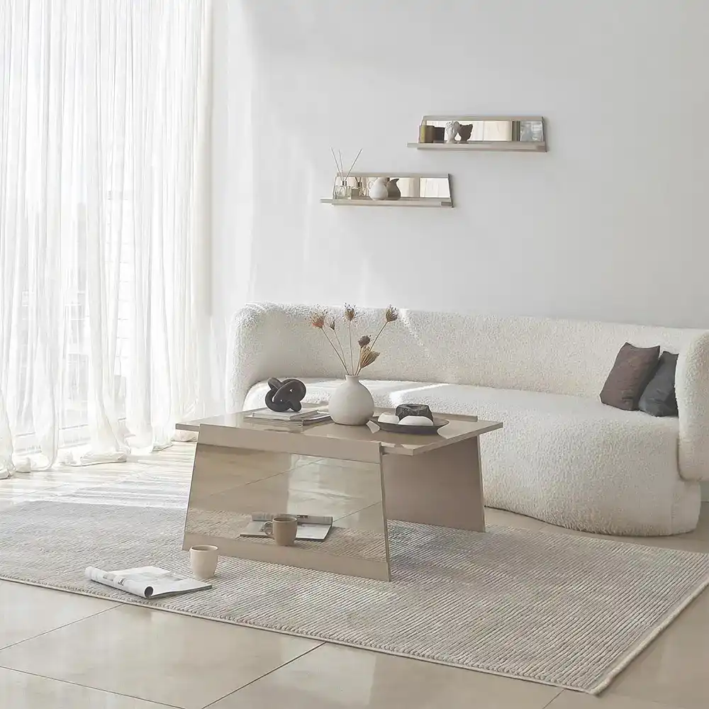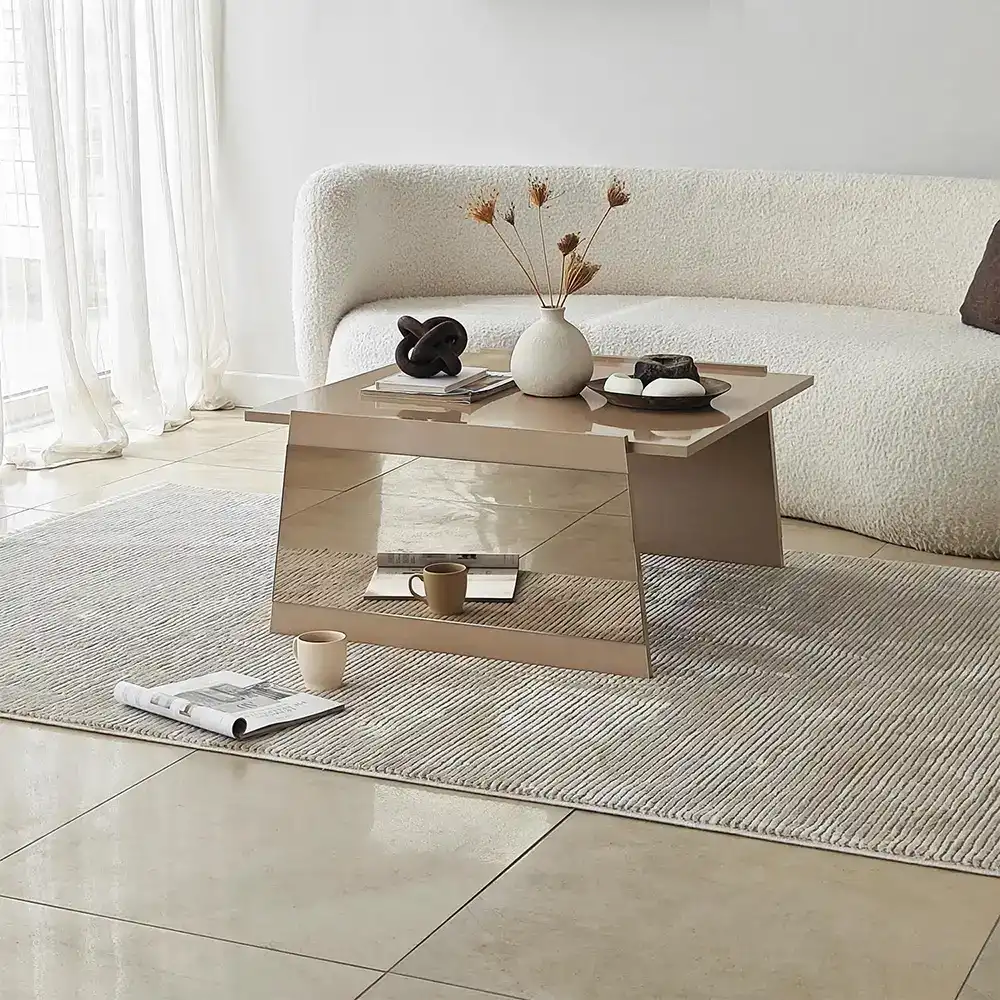 Queen Jurnal Masası - Krem/Bronz Güzgü