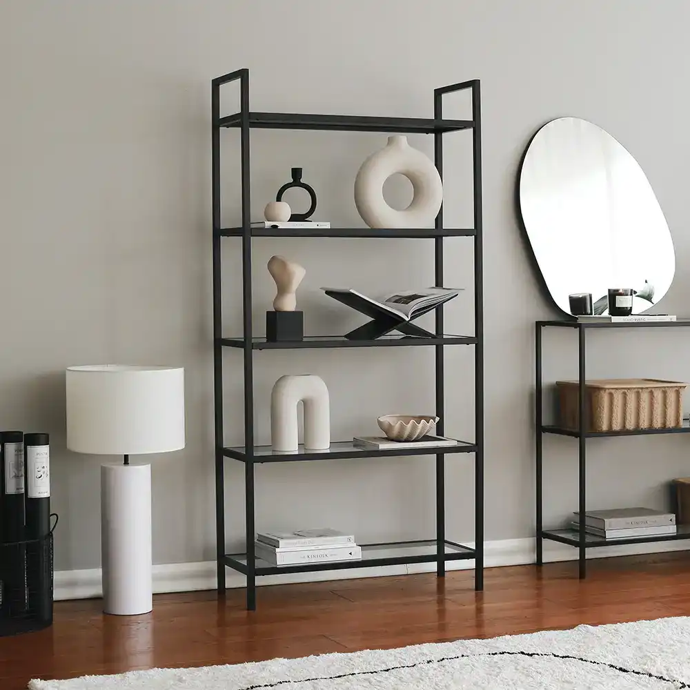 Reva Kitab Rəfi Temperli Şəffaf Şüşə - Qara