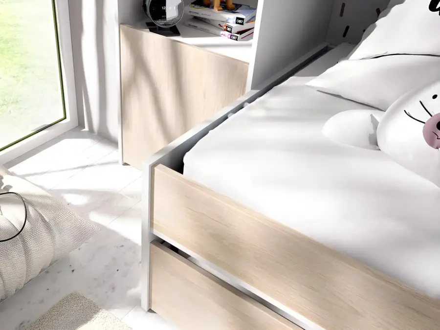Selena İki Mərtəbəli Çarpayı + Dolab Dəsti - Ağ/Meşə