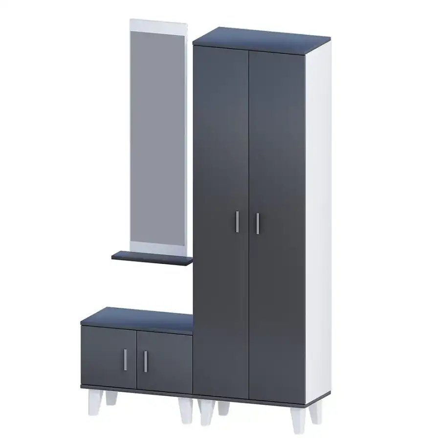 Selyan Güzgülü Asılqanlı Dəhliz Dolabı - Antrasit/Ağ