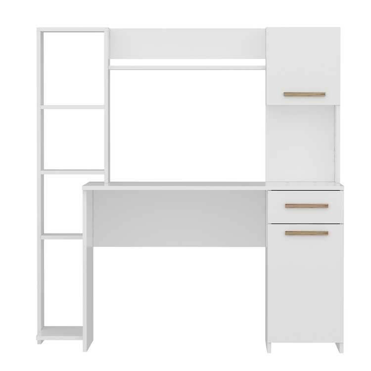 Extra Divar Rəfli Çalışma Masası və Kitab Rəfi Dəsti - Ağ