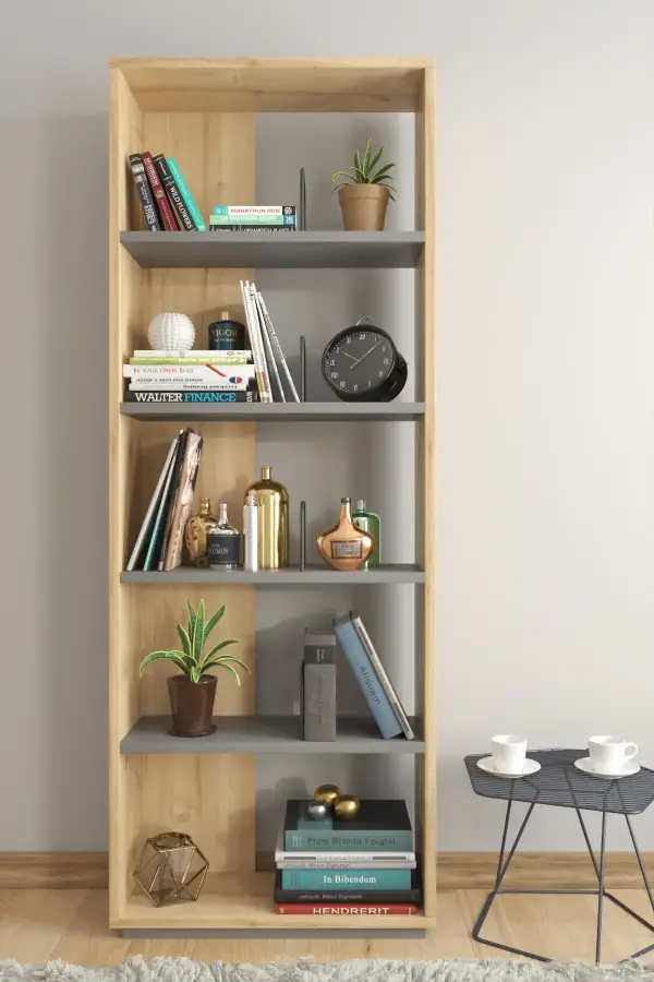 Aqua 3Lü Kitab Rəfi/Antrasit Masif Ahşap