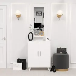 Venis Güzgülü Dəhliz Dolabı - Ağ/Meşə