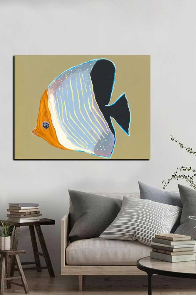 Turuncu Başlı Kelebek Balığı Kətan Tablo