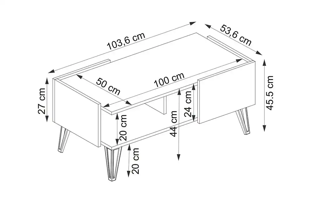 En: 103,6 cm, Hündürlük: 53,6 cm, Dərinlik: 45,5 cm