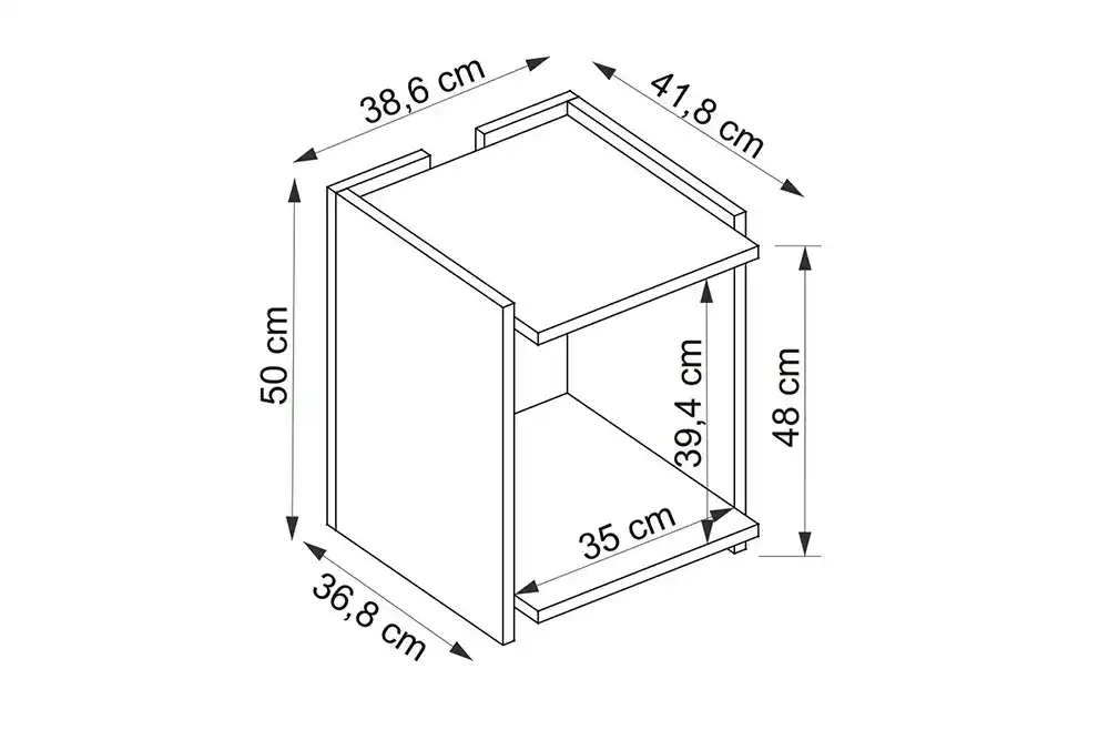 En: 38 cm, Hündürlük: 50 cm, Dərinlik: 41,8 cm