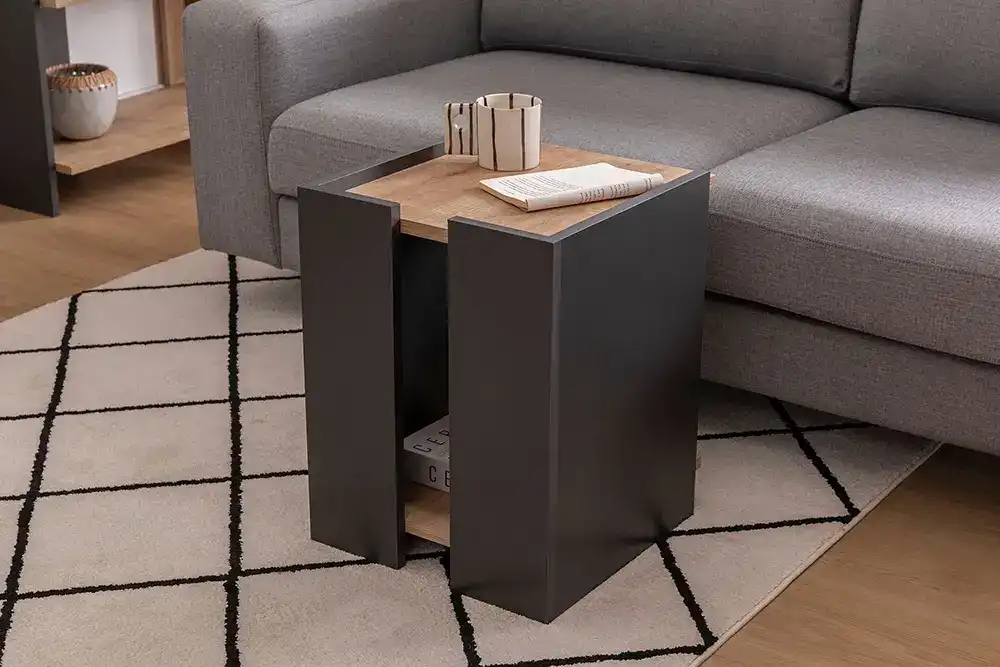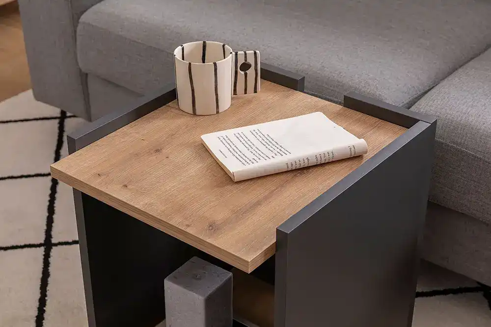 City Yan Sehpa Seti - Kestane & Şeffaf
