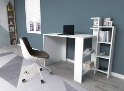 Extra Divar Rəfli Çalışma Masası və Kitab Rəfi Dəsti - Ağ