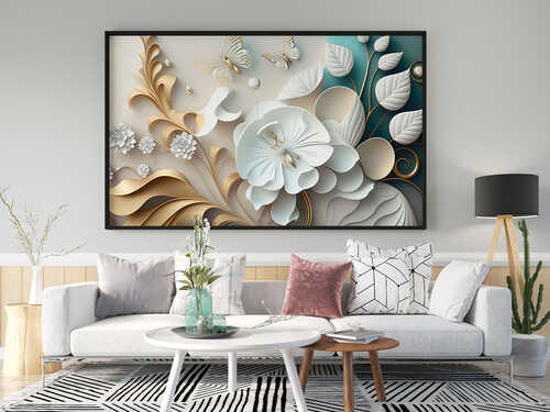 White 3D Flower Kətan Tablo